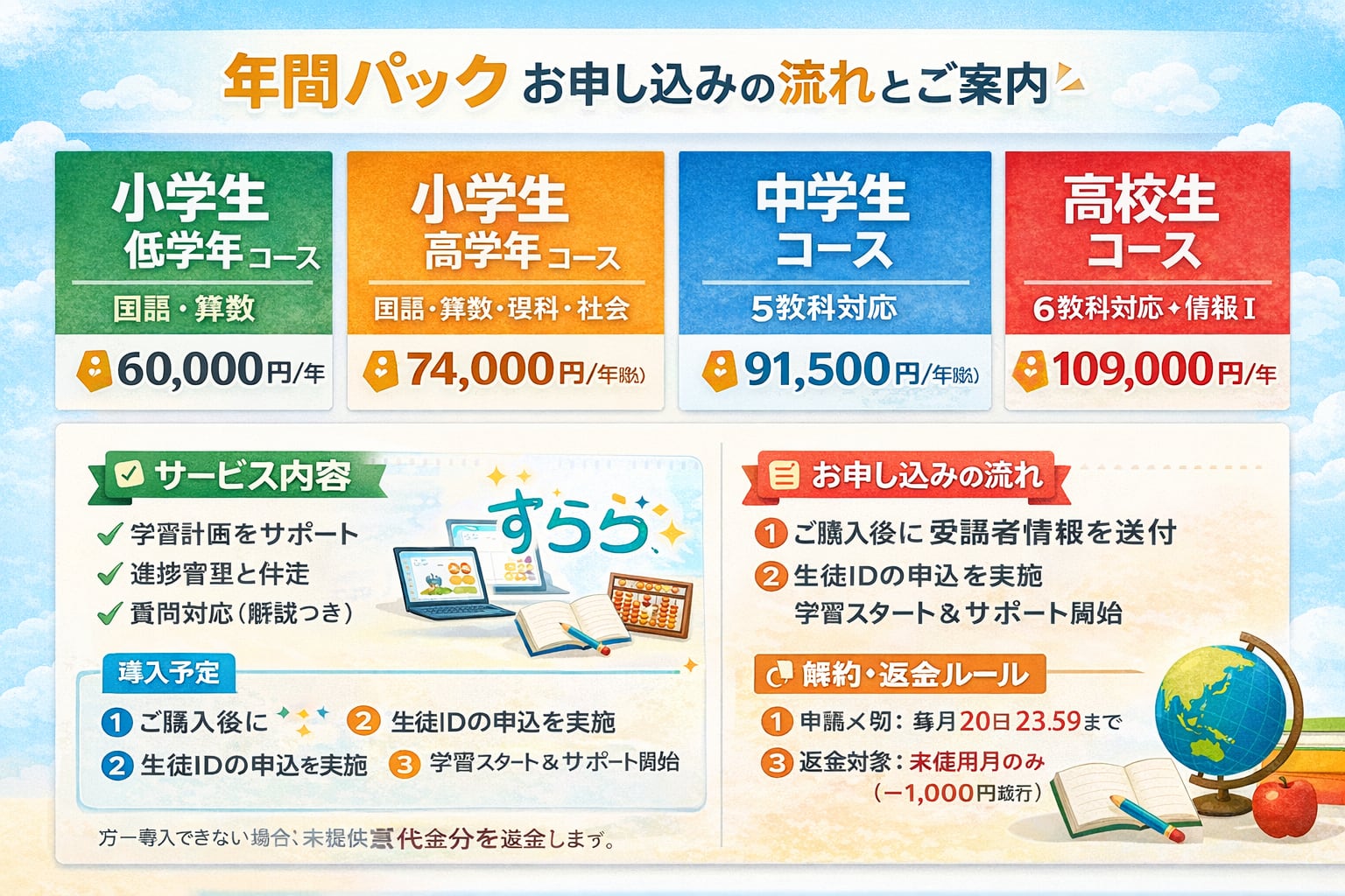 【年間パック】小学生 高学年コース(国語・算数・理科・社会)|学習サポート 1名 すららネット:AI教材「すらら」導入予定